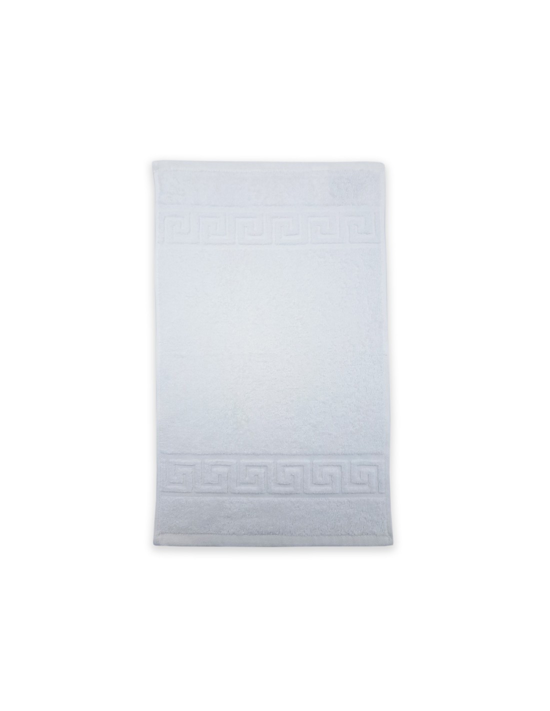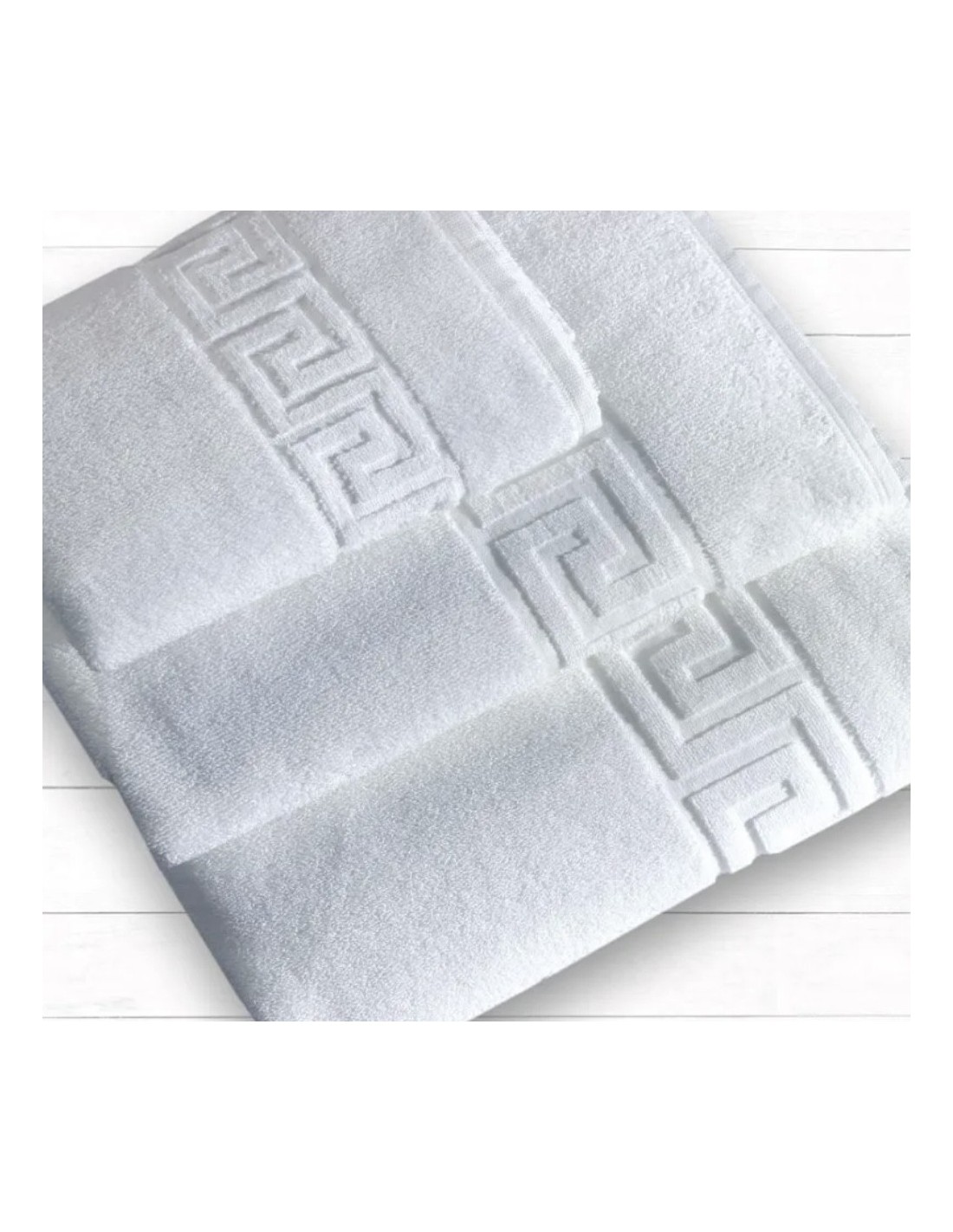 Hochwertiges Handtuch aus 100% Baumwolle, weich, saugfähig und langlebig. Mit einem Gewicht von 480 g/m² bietet es hervorragenden Komfort und schnelles Trocknen. Sein klassisches weißes Design enthält eine elegante römische Bordüre, die einen Hauch von Unterscheidung verleiht.