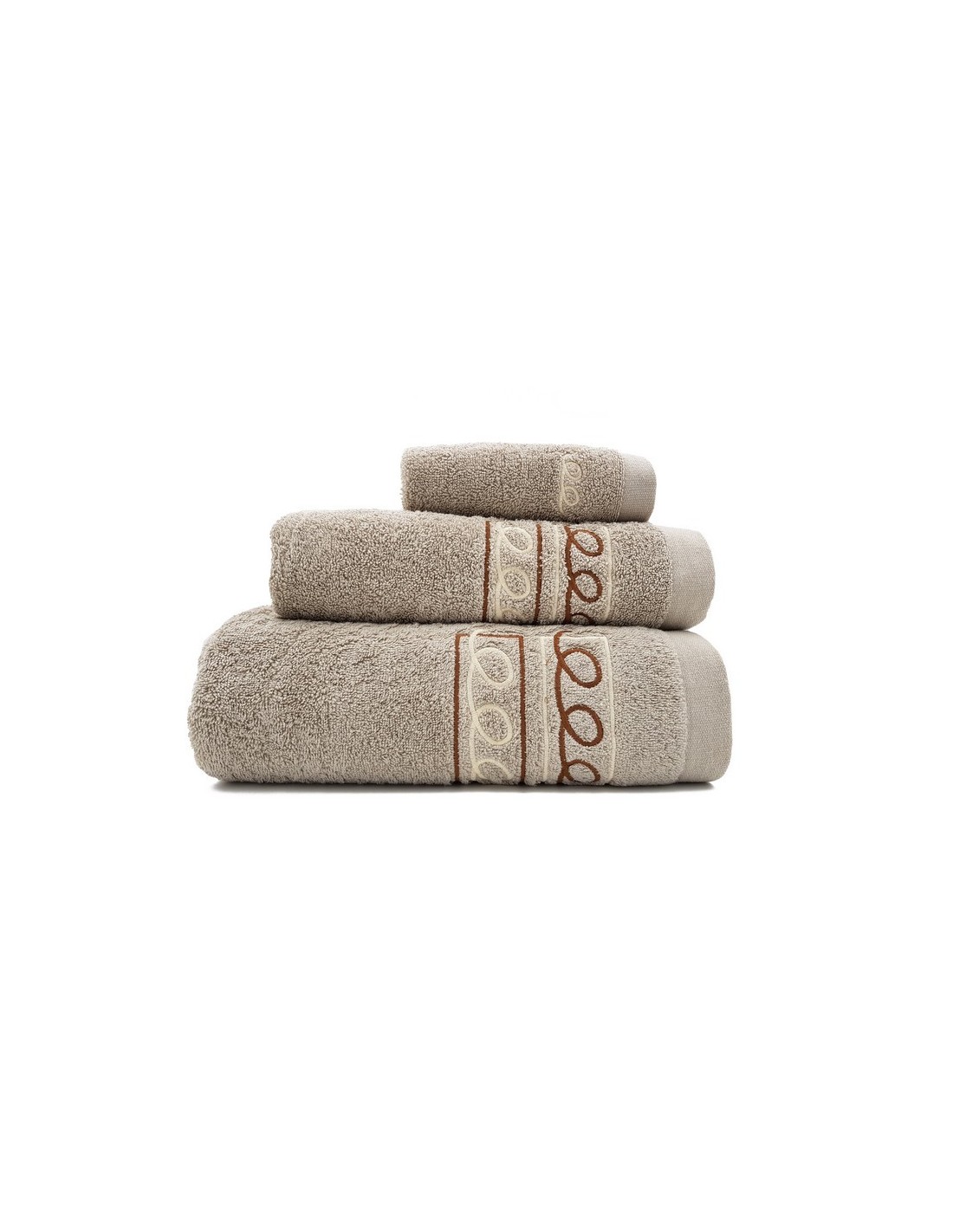 Composición de este juego de toallas Bordado Espiral 100% algodón peinado. 650 gr. m2.