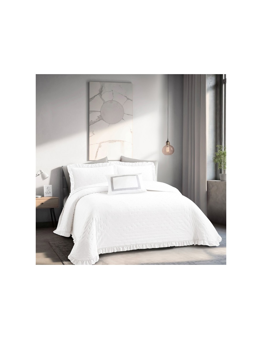 BiancaDécouvrez l'élégance et le confort de notre couvre-lit bouti Toja, avec une texture de petits points thermocollés. Son design avec volant ajoute une touche délicate et sophistiquée, parfaite pour créer une ambiance chaleureuse et élégante dans votre chambre.