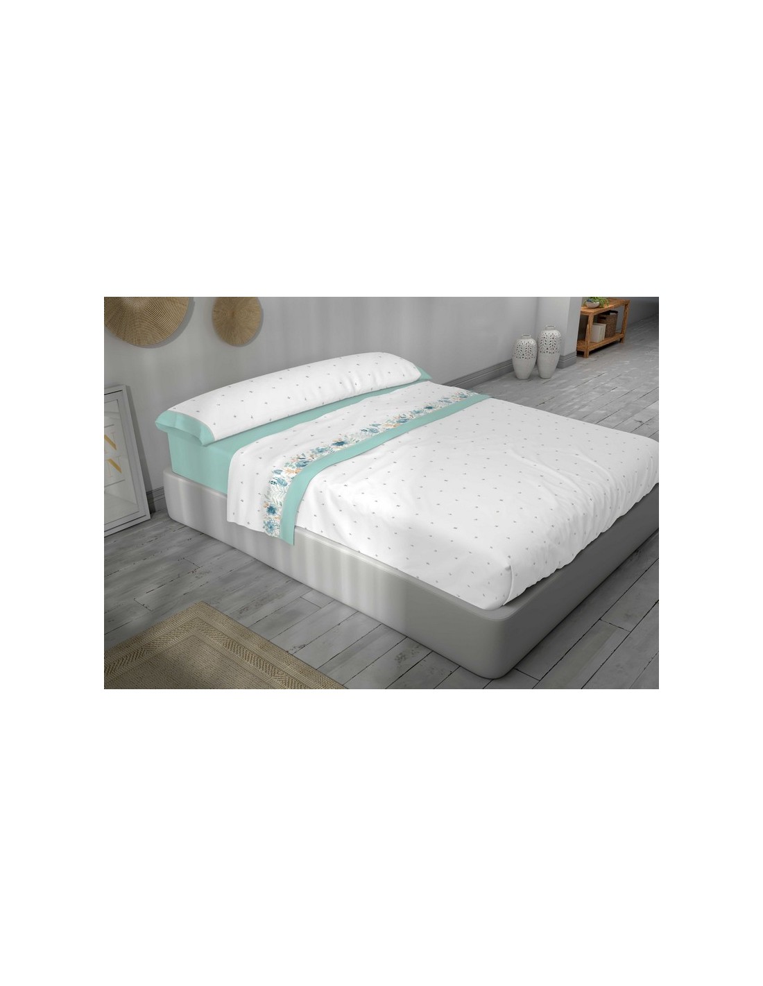 BiancaJeux de draps imprimés modèle Tula en couleur turquoise, composés de 3 pièces : un drap-housse ajustable, un drap plat et une taie d'oreiller. Facile à repasser et résistant.
