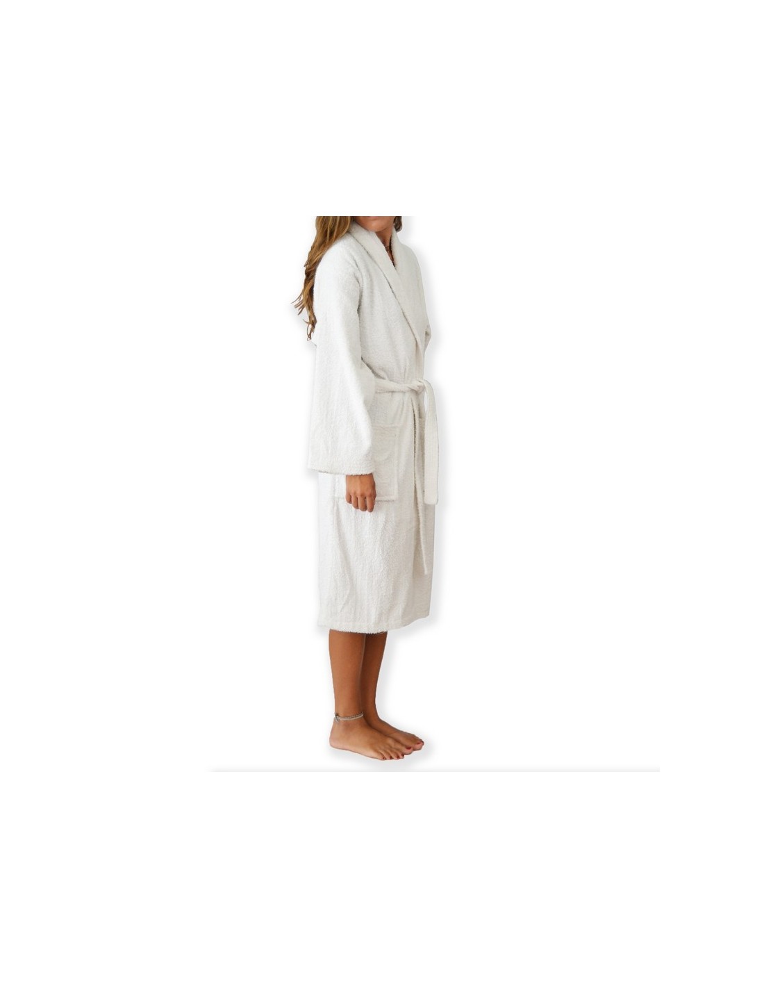 Composition de ce peignoir 100% coton Torsion Zero Twist. 440 gr. m2.