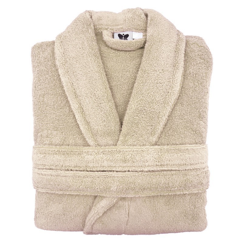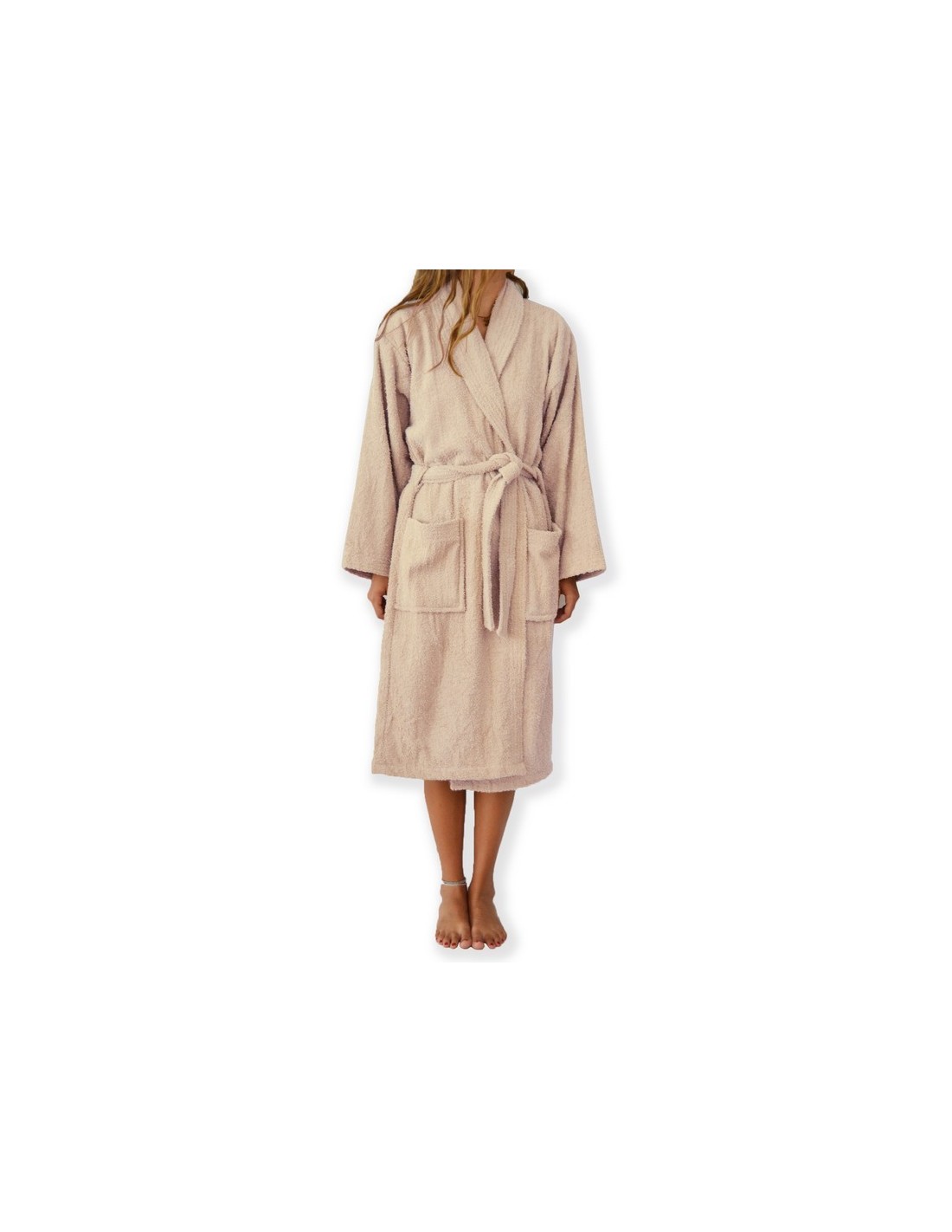 Composition de ce peignoir 100% coton Torsion Zero Twist. 440 gr. m2.