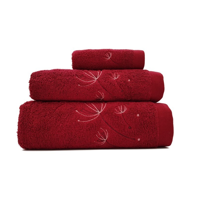 Composition de ce jeu de serviettes Brodées Liz 100% coton peigné. 650 gr. m2.