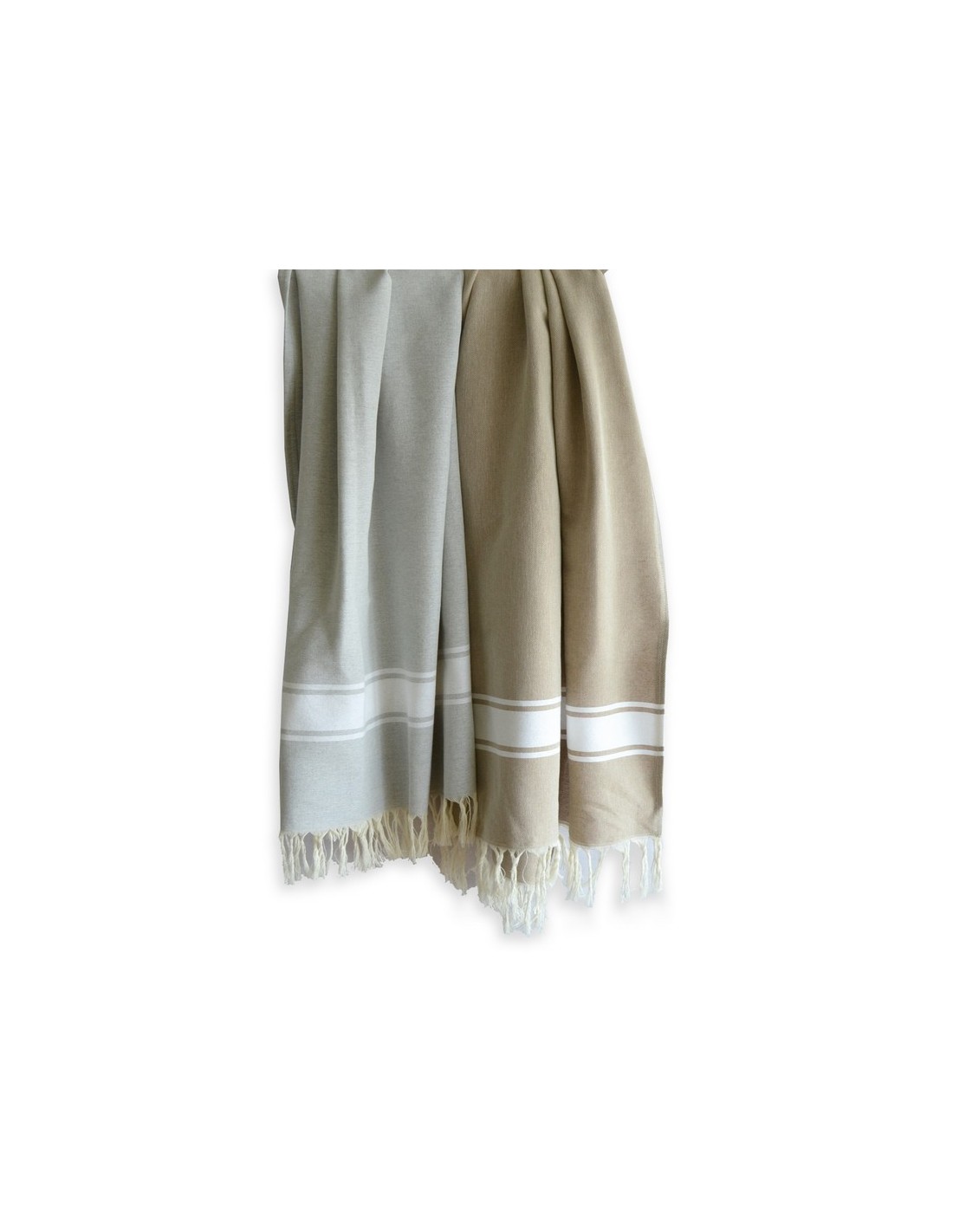 Découvrez la douceur et la polyvalence de notre lot de 2 serviettes foutà vison/gris, conçues pour vous offrir une expérience de séchage confortable et pratique. Confectionnées avec un mélange de 80% coton et 20% polyester, ces serviettes combinent le meilleur des deux matériaux, garantissant une haute absorption et résistance.