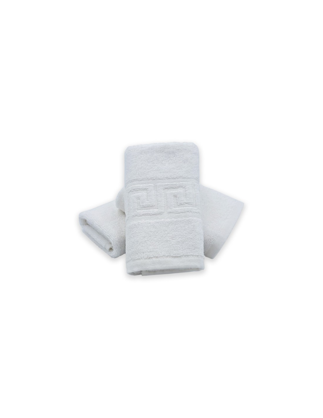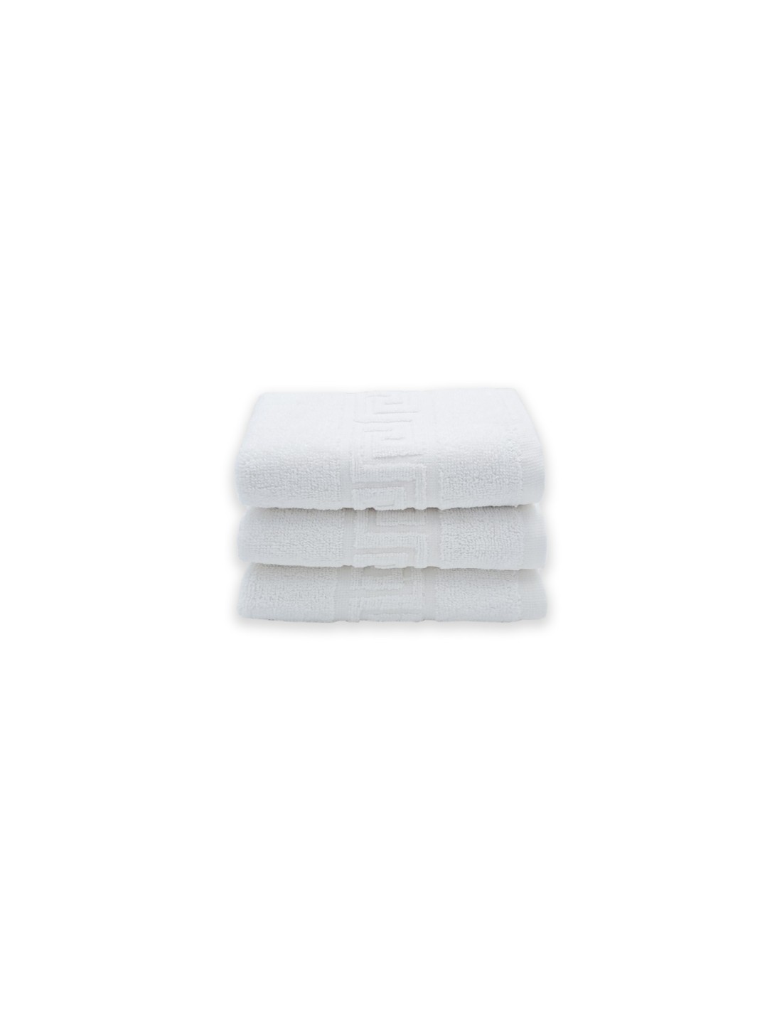 Serviette de haute qualité confectionnée en 100% coton, douce, absorbante et durable. Avec un grammage de 480 g/m², elle offre un excellent confort et un séchage rapide. Son design en blanc classique intègre une élégante frise romaine qui apporte une touche de distinction.