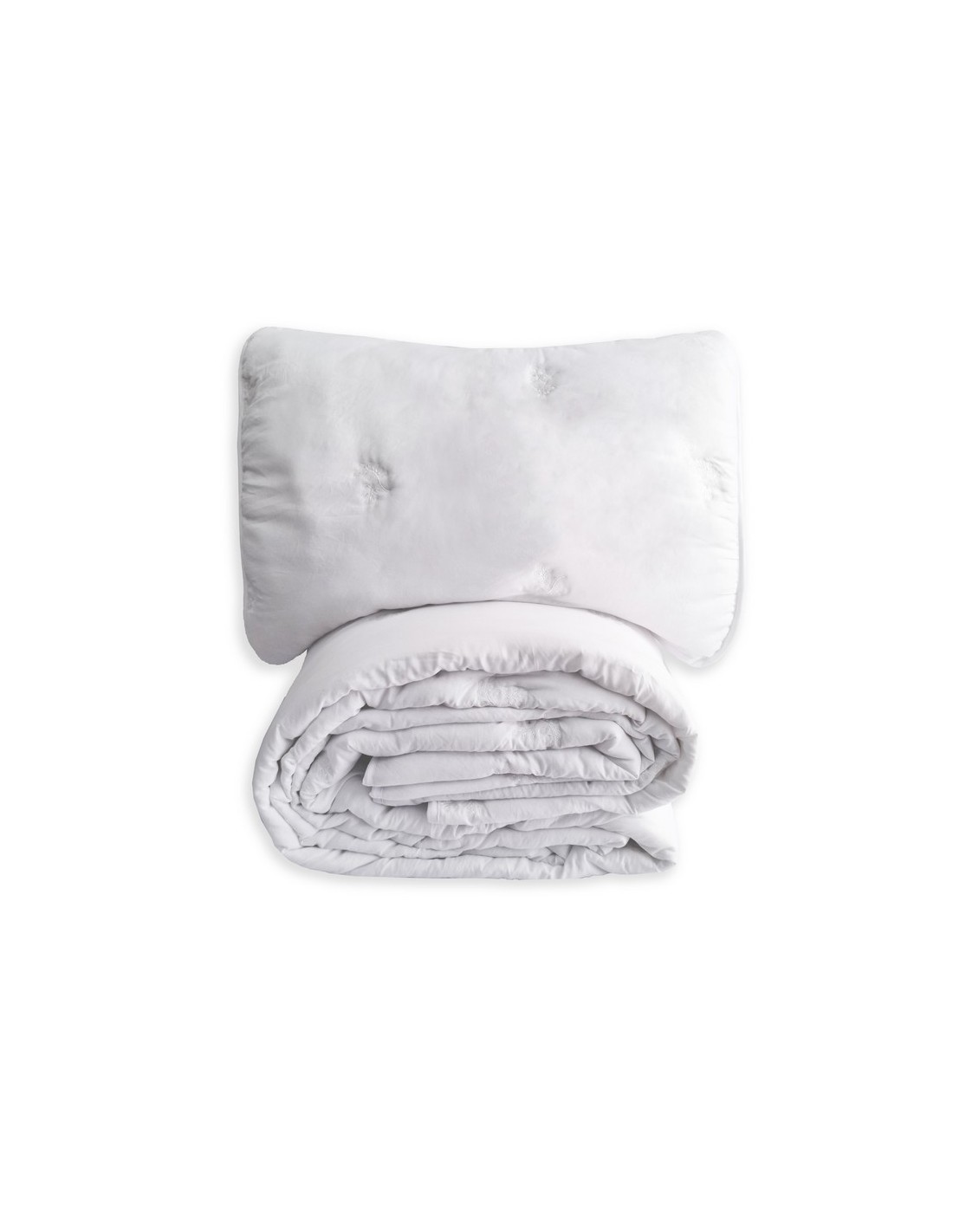 The Alborán bouti quilt, with its delicate floral motif embroidery in white, adds a romantic and elegant touch to your bedroom. Its sophisticated design and soft texture create a cozy and stylish atmosphere, perfect for those looking to combine comfort with a touch of classic beauty.
