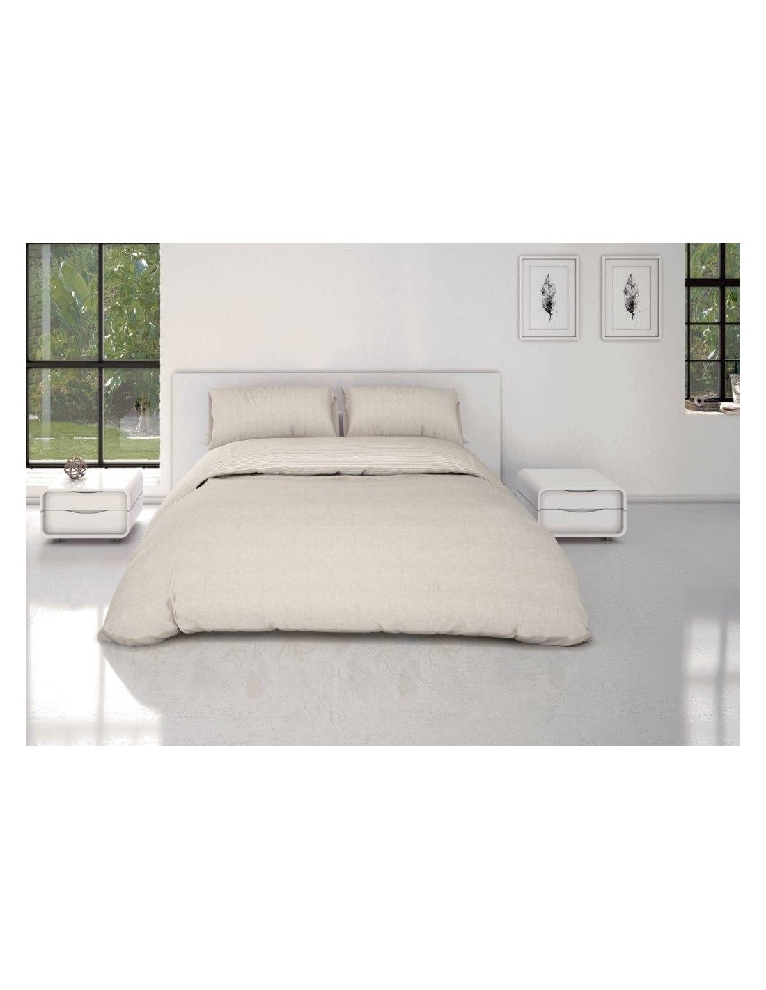 Albia Nordic Duvet Cover 2-piece (without fitted sheet). Reversible linen texture for greater versatility and elegance in a semi-plain cover, to give your bed a different style.