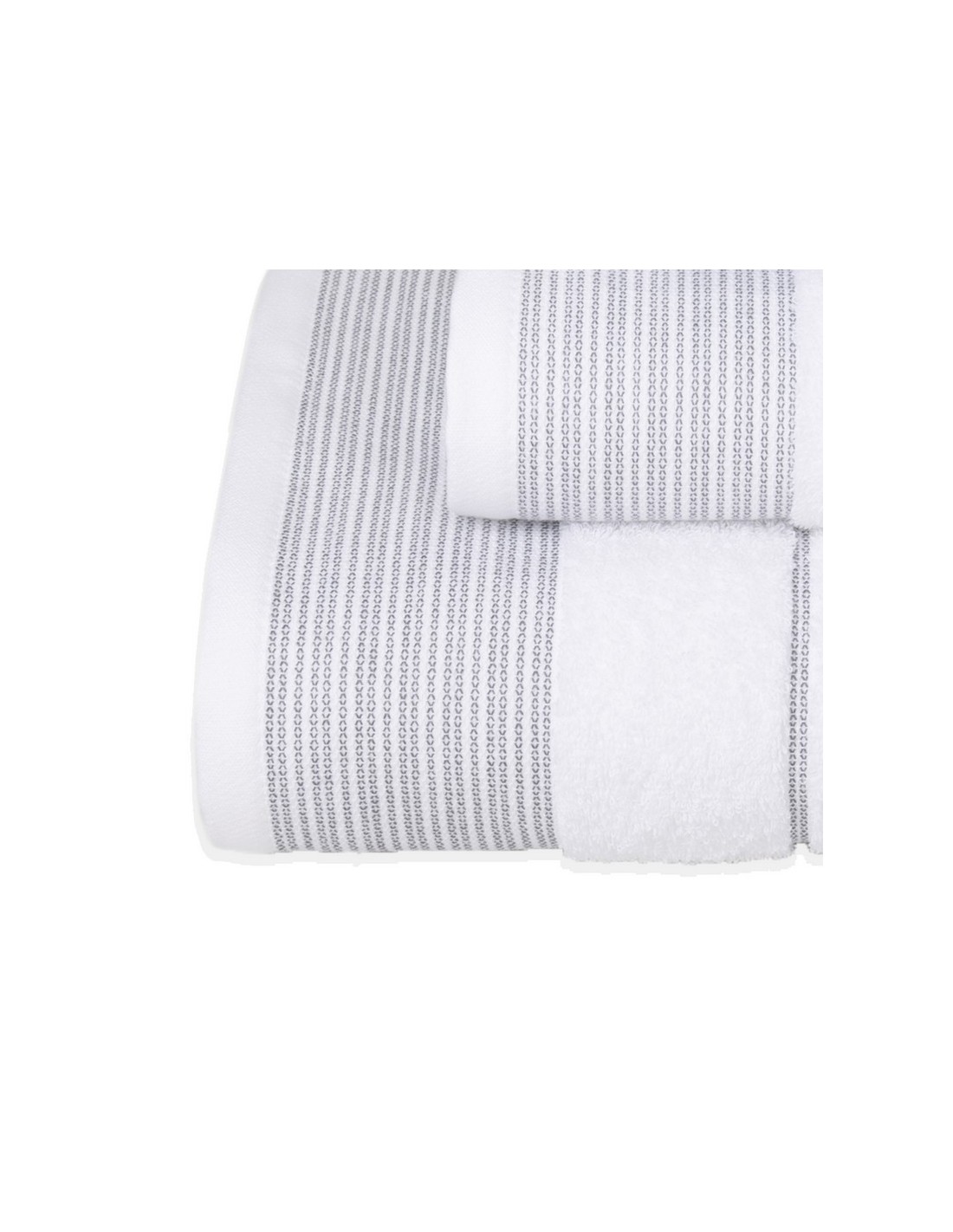 Composizione di questo set di asciugamani Doppio Jacquard con bordo geometrico e piccoli bordi 100% cotone convenzionale. 500 gr. m2.