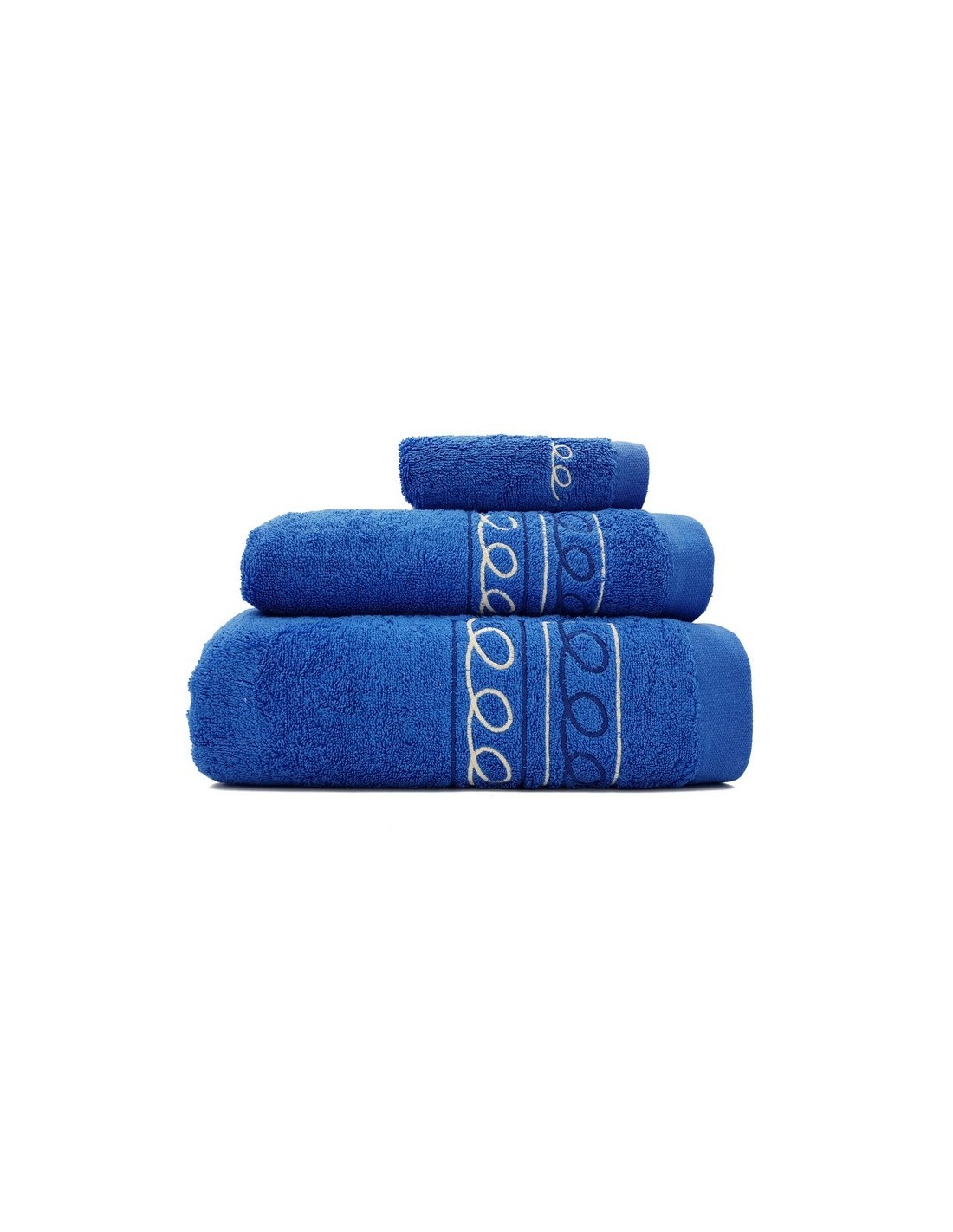 Composição deste jogo de toalhas Bordado Espiral 100% algodão penteado. 650 gr. m2.