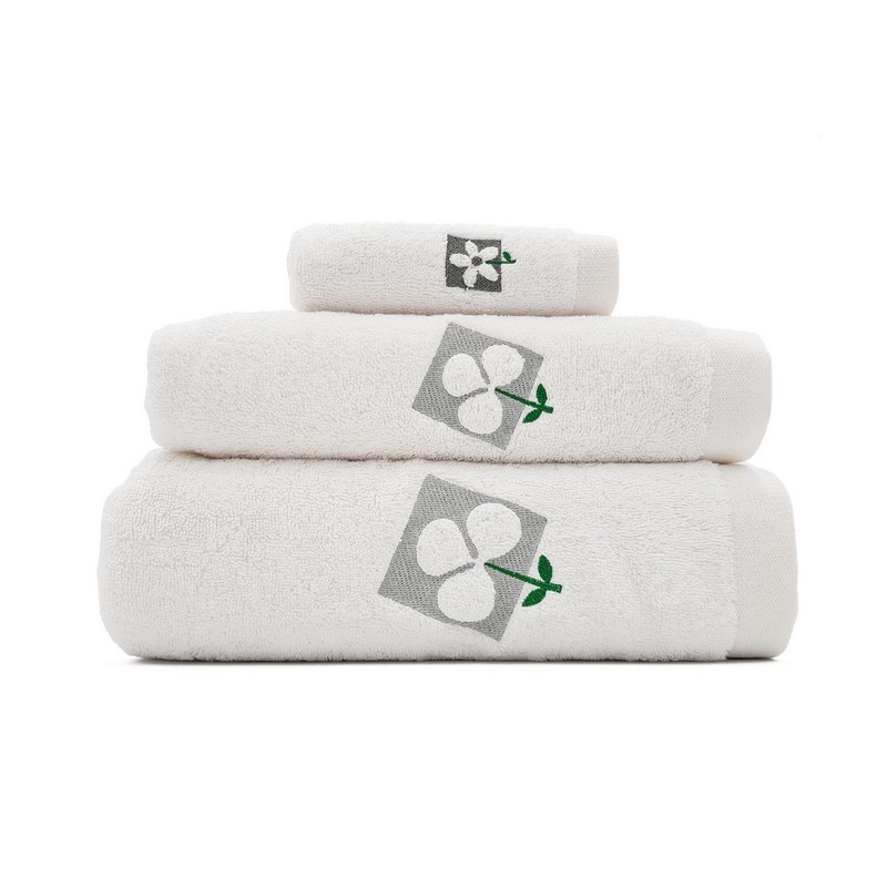 Composição deste jogo de toalhas Bordado Marga 100% algodão penteado. 650 gr. m2.